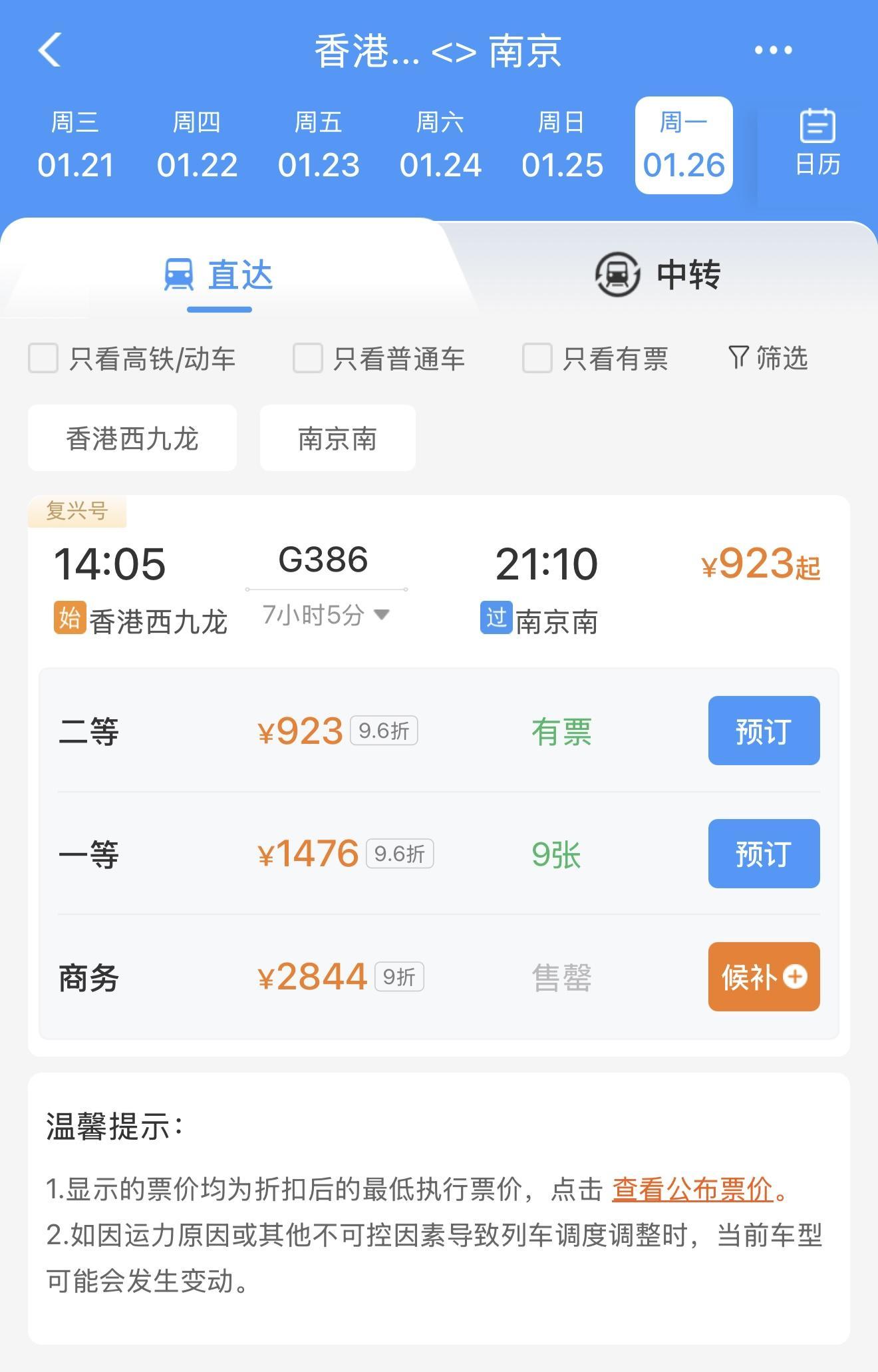 香港直達南京高鐵票開售,全程7小時票價923元起現代快報全媒體 1小時前